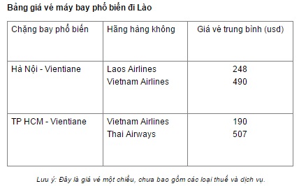 Mời bạn tham khảo giá vé Lào 2 chiều của các hãng: